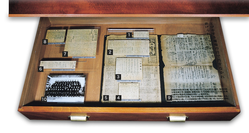 - 野脇中学校新聞 第5号(昭和26年2月25日発行)和歌「花摘めば…」他11首(部分拡大)118×23
